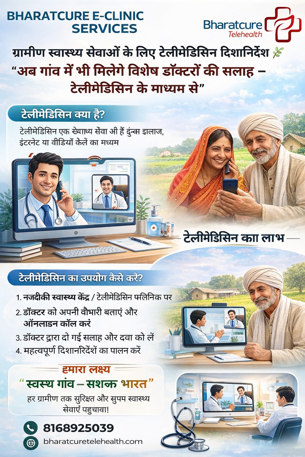 At Bharatcure Telehealth, our mission is to make quality healthcare accessible, convenient, and affordable for every individual across the nation. We believe in leveraging technology to bridge the gap between healthcare providers and patients, ensuring timely and efficient delivery of medical services.