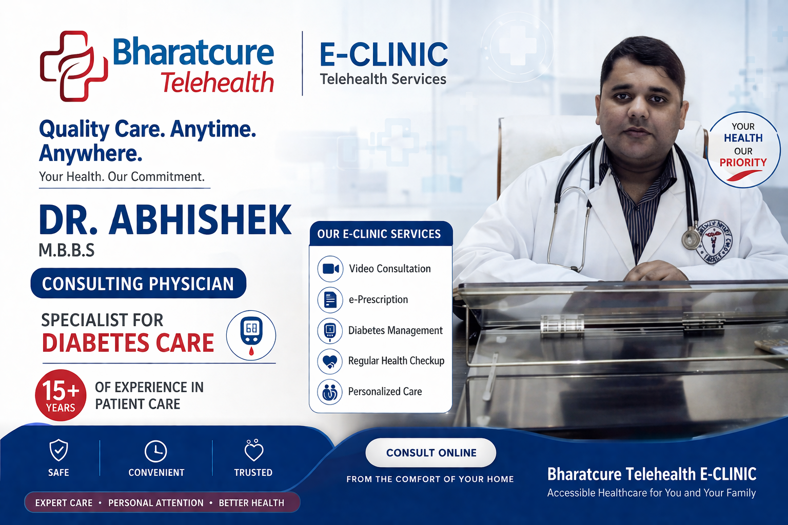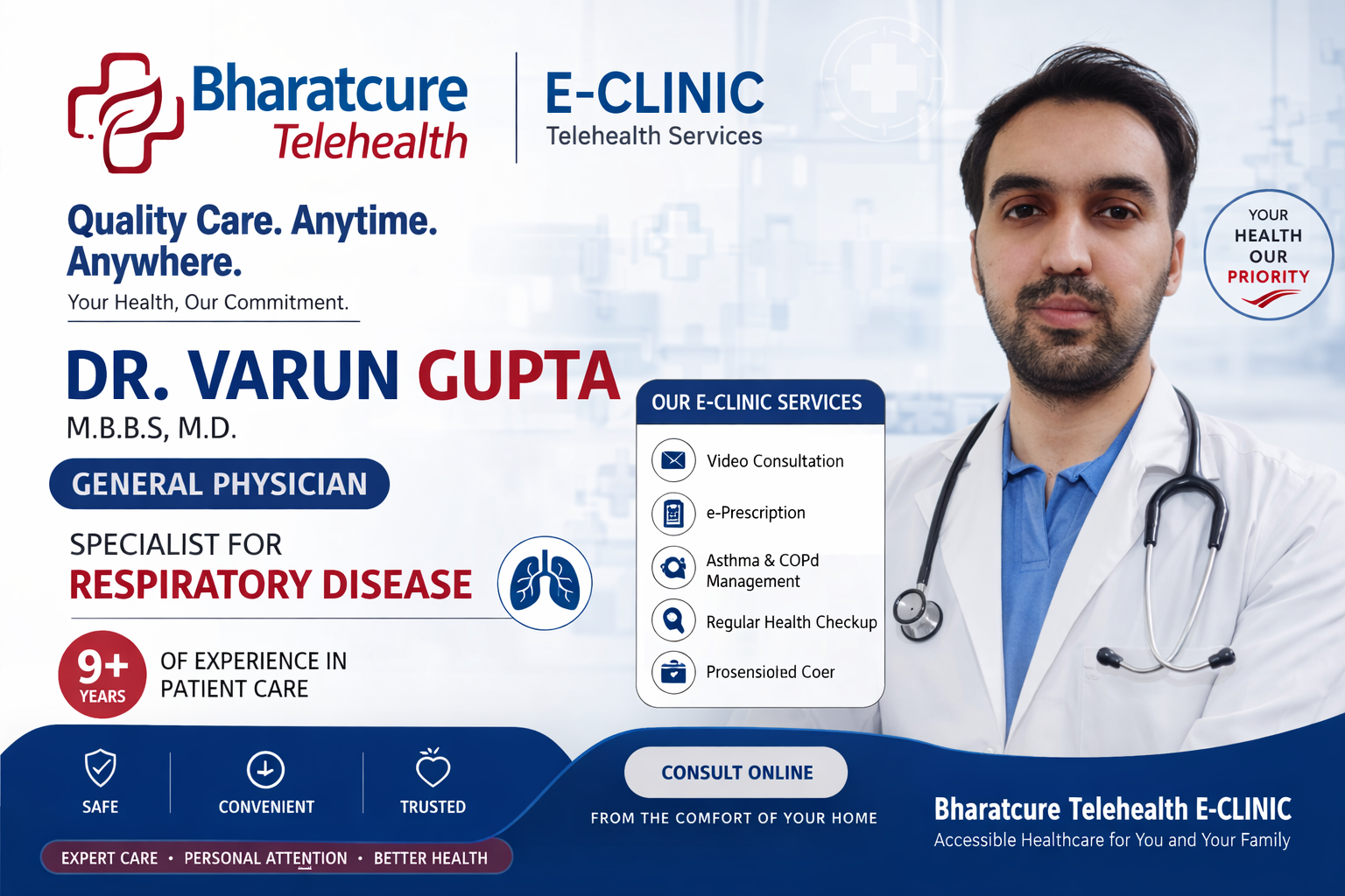 Bharatcure Telehealth is not suitable for emergencies or urgent medical situations. If you have a medical emergency, please call your local emergency number immediately. Telehealth consultations are designed for non-emergency medical concerns and routine healthcare needs.